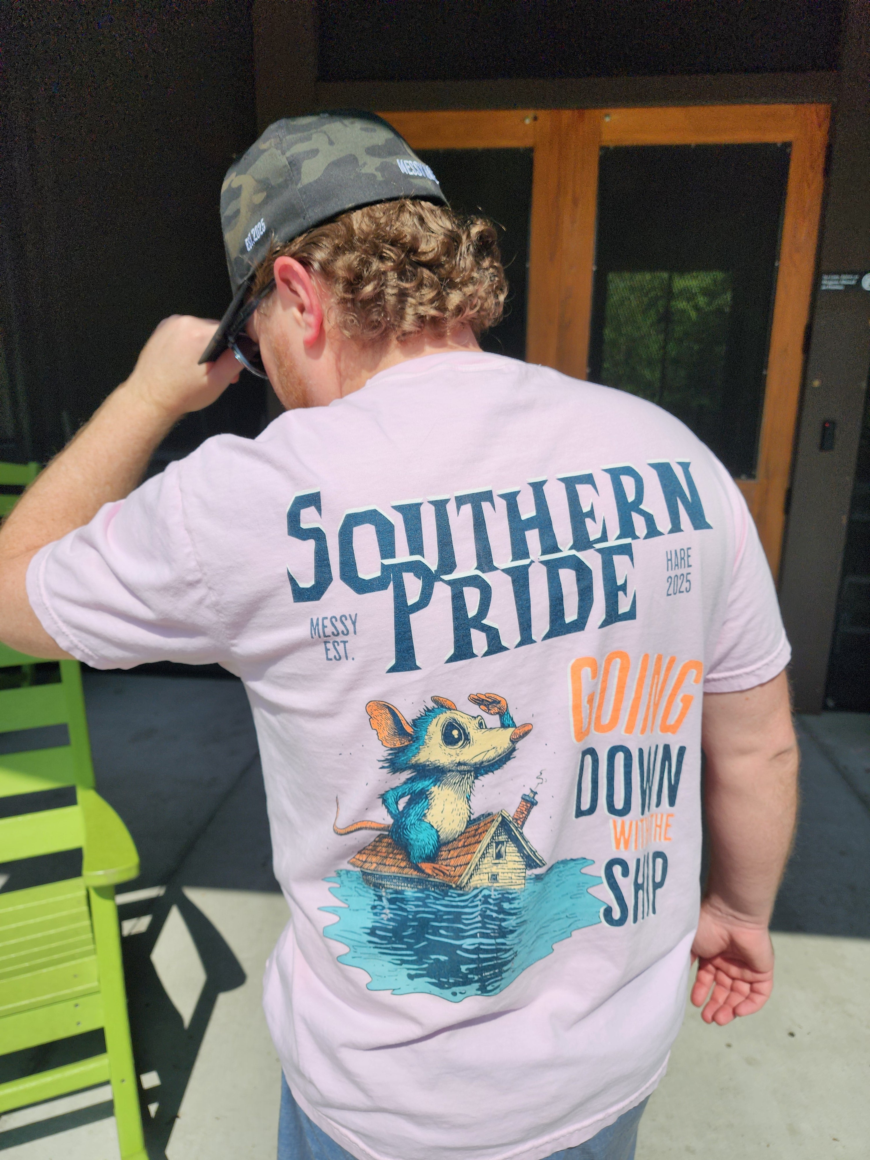 This one’s for the stubborn souls who won’t abandon the porch — even when it’s underwater. Proudly Southern, recklessly loyal, and just a little too comfortable in rising floodwaters, this tee salutes the unhinged possum in all of us.